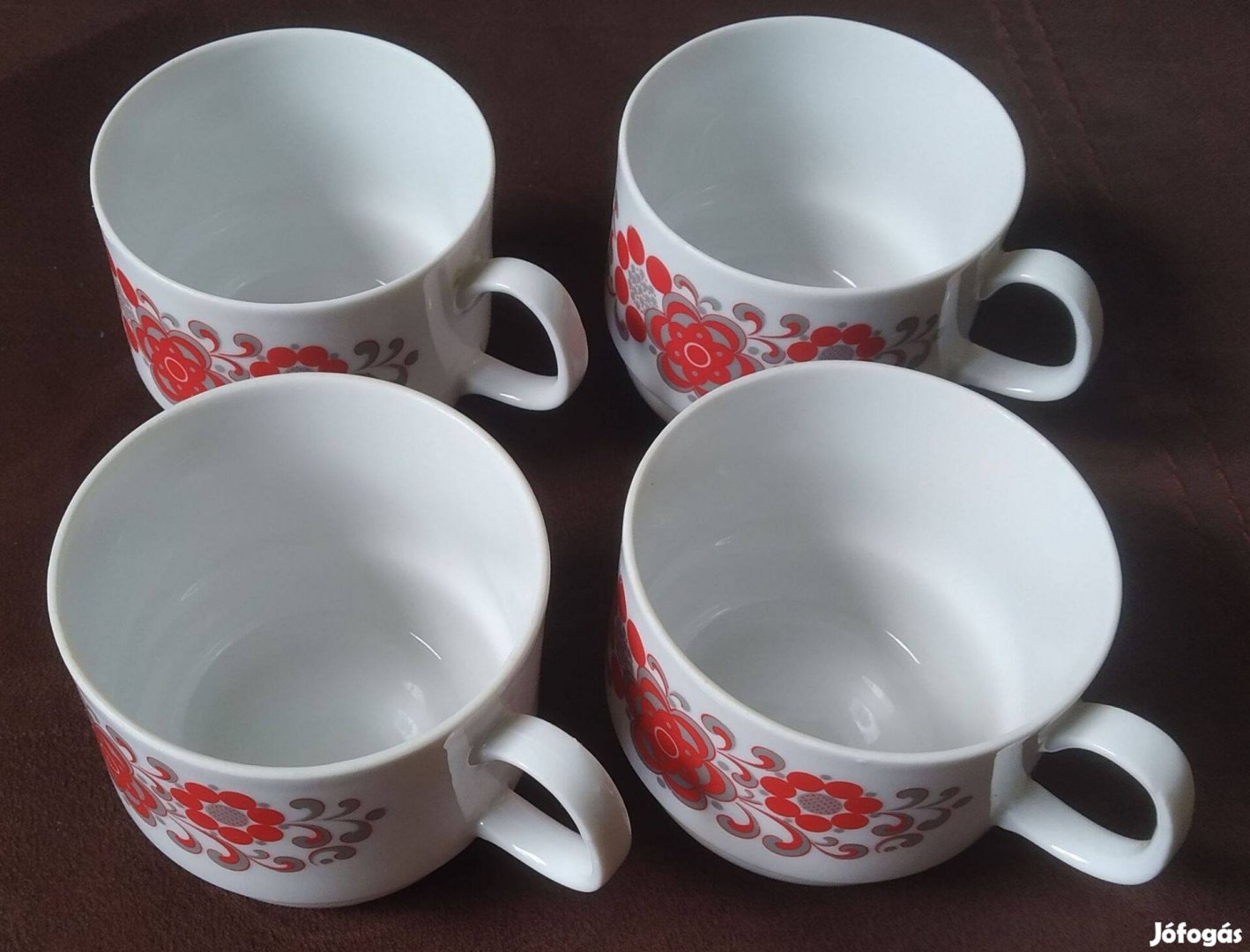Eladó 4 db német porcelán kávéscsésze. Gyártó : Bareuther ( Waldsassen, Bajorország ). Jelzettek, a szokásos jelzés alatt még a 231-es szám szerepel ( ha jól látom ). Azonkívül még a porcelán anyagába 2 szám van nyomva : az "51" és a "4732", bármit is jelentsenek ezek. A csészék mind jó állapotban vannak, hibátlanok. A méreteik : 6.5 cm magas és 7.5 cm széles. Csak az egyik oldalon van minta rajtuk, stilizált virágok, piros és szürke színekben. Tartozik hozzájuk aljak is, szép fehérek, minta nélkül ( ezekből 5 db van. ) Valamint van egy kis cukortartó is, 7 x 9 cm. Alkalmasak készletek pótlására vagy gyűjtőknek...