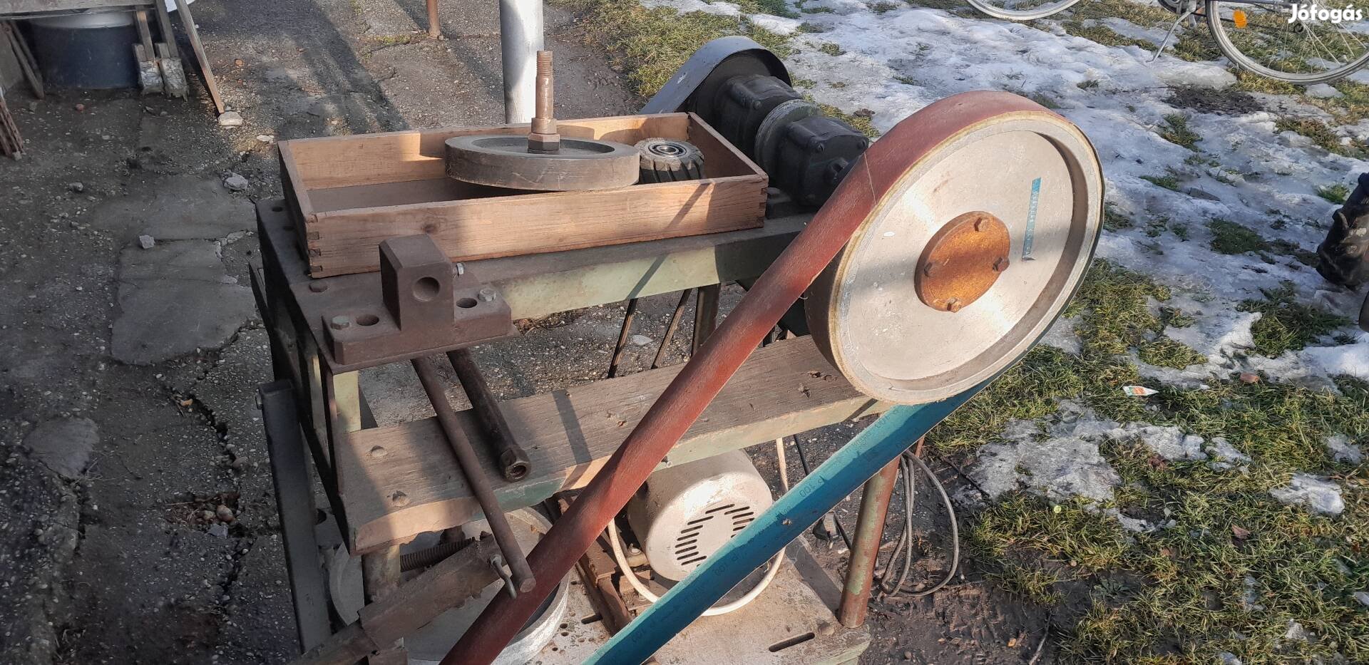 Eladó többfunkciós kisgép, fellelt állapotban, asztalos szerszám, fa csiszoló, kis gyalu az oldalán. Kis tokmány.