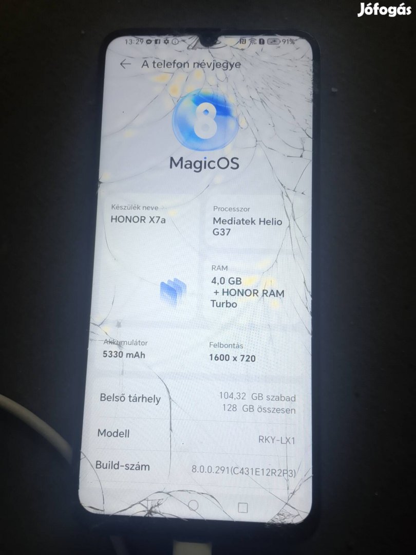 Eladó egy honor telefon független duál sim 128 GB törött de működik aksia nagyon jó 4 naponta töltöm