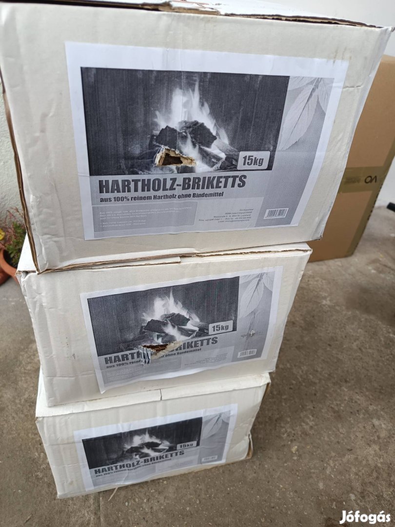 Eladó keményfa brikett 15 kg/karton. 20 karton van. 3000 kartonja vagy 56000 egyben