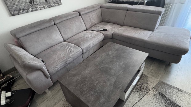 Valódi bőr, modern L-alakú sarokkanapé - ágyazható