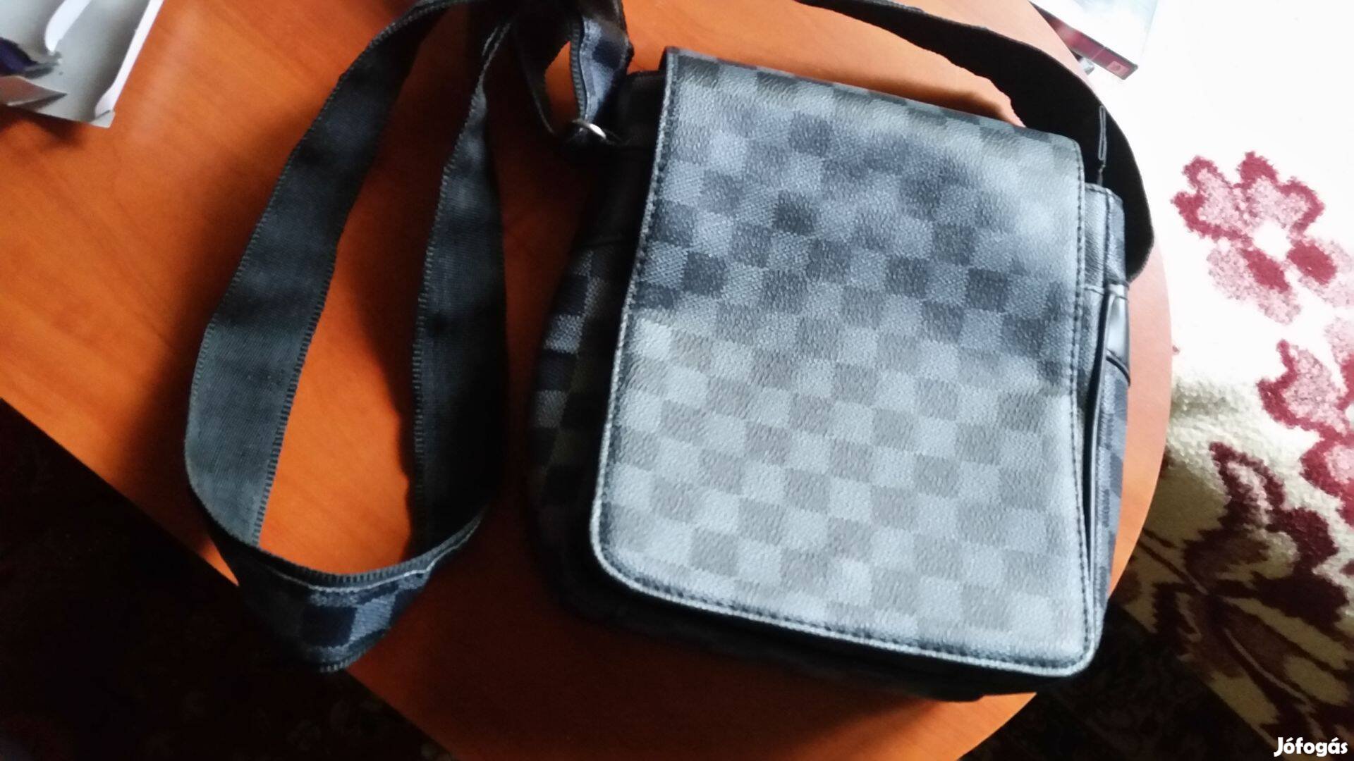 +ajándék hasonló méretű, újszerű, fekete, sokzsebes válltáska