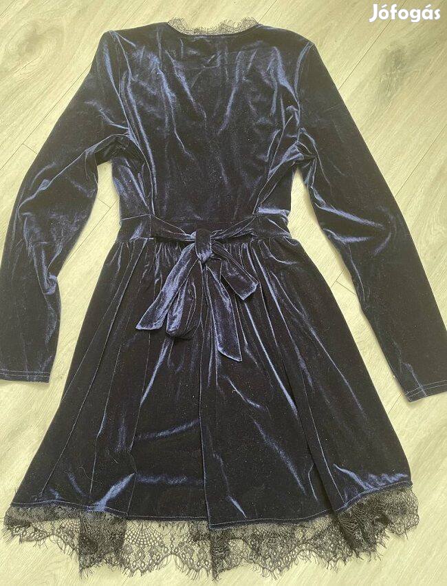 sötétkék bársonyruha csipkével hátul megkötős 38-40