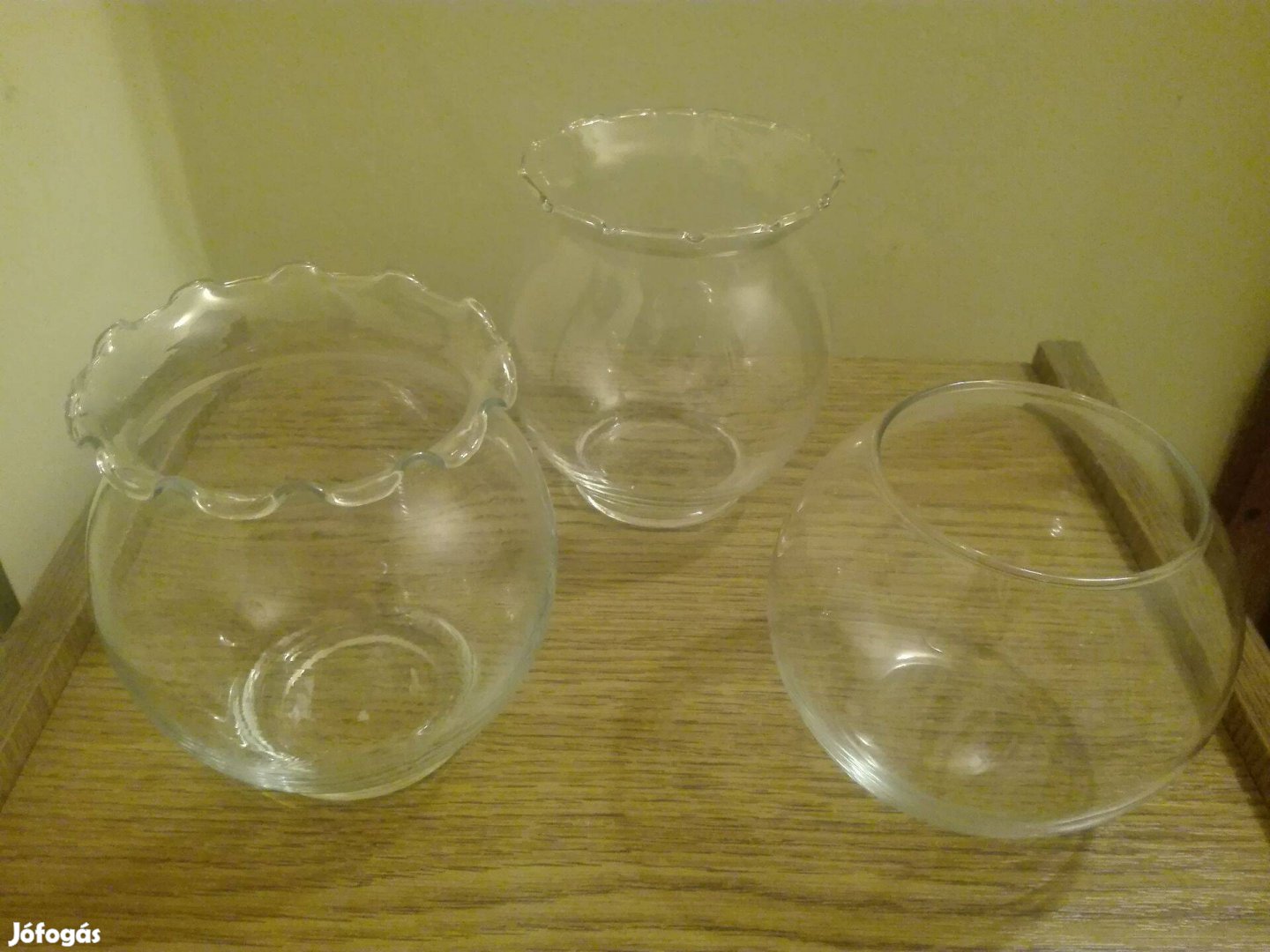 Eladó 3 db gömb alakú kis üveg váza.