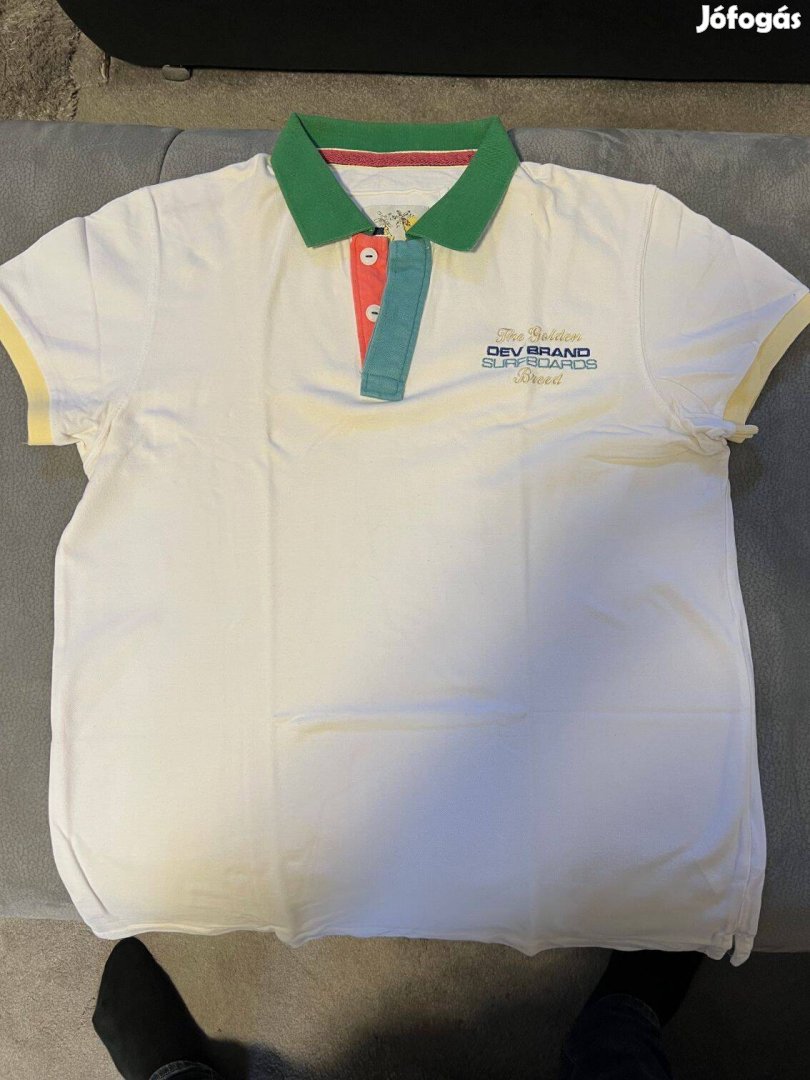A fehér XL devergo hibátlan , Pepe Jeans L (ami XL-es méret kb) hibátlan , csíkos retro galléros póló a varrás mentén ami piros átlátszik a fehér csíkokon talán picit meg is fogta (5.kép) , kék devergo galléros a mosástól picit kopottabb nem vészes , az utolsó a hosszú újjú galléros 1x volt viselve viszont az utolsó előtti képen látszik a fehér részen van pár csík nem tudom ez lehet gyárilag ilyen volt. Egyet lemértem hasonló méret kb mind sőt talán ez a legkisebb, de privátba küldök mindegyikről mért fotót. A jófogás 10 képet enged csak. Ajánlom végig nézni az általam hirdetett ruhákat ( mind új vagy újszerű és eredeti darabok M-L-XL ). Eladó a képen látható jó állapotú XL méretű Devergo gallérod póló. Debrecen - Püspökladány - Sárrétudvari vonalon személyesen megtekinthető. Előre egyeztetett időpontban.Természetesen csomagküldéssel , posta bármivel is küldöm.