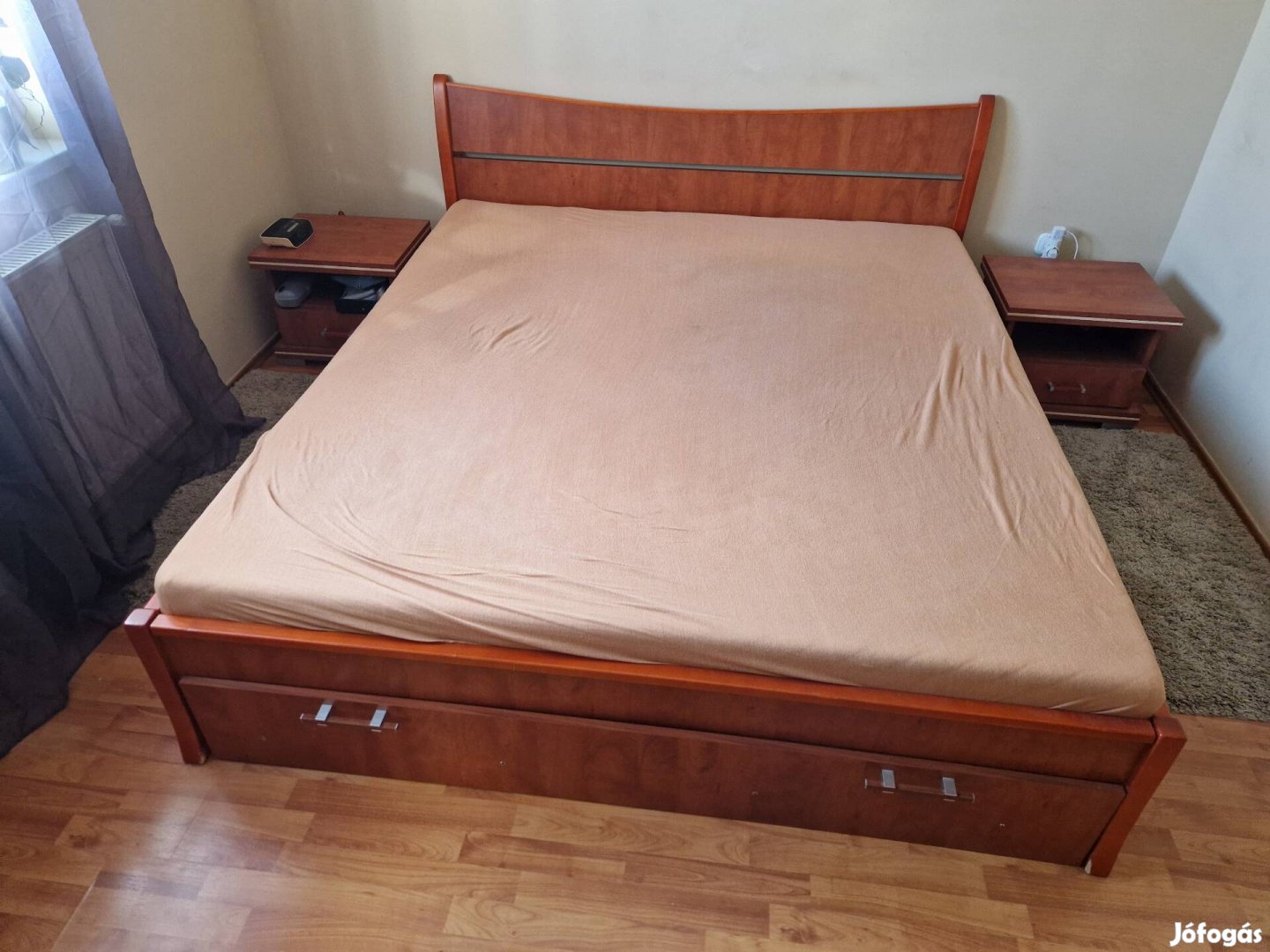 Ágykeret, ágyráccsal, ágyneműtartóval és két éjjeliszekrénnyel. Megegyezés szerint matraccal is vihető + 30000.-