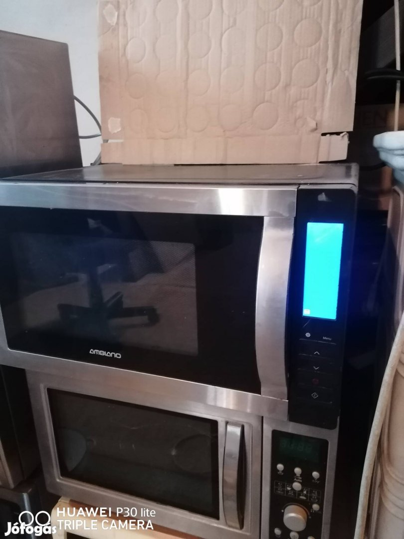 900 W mikro teljesítmény, alul felül grill fűtőszál, fém tányér, hőlégkeverős sütő, inox, saválló acél belső, digitális vezérlés, és kijelző, kiprobalható állapotban