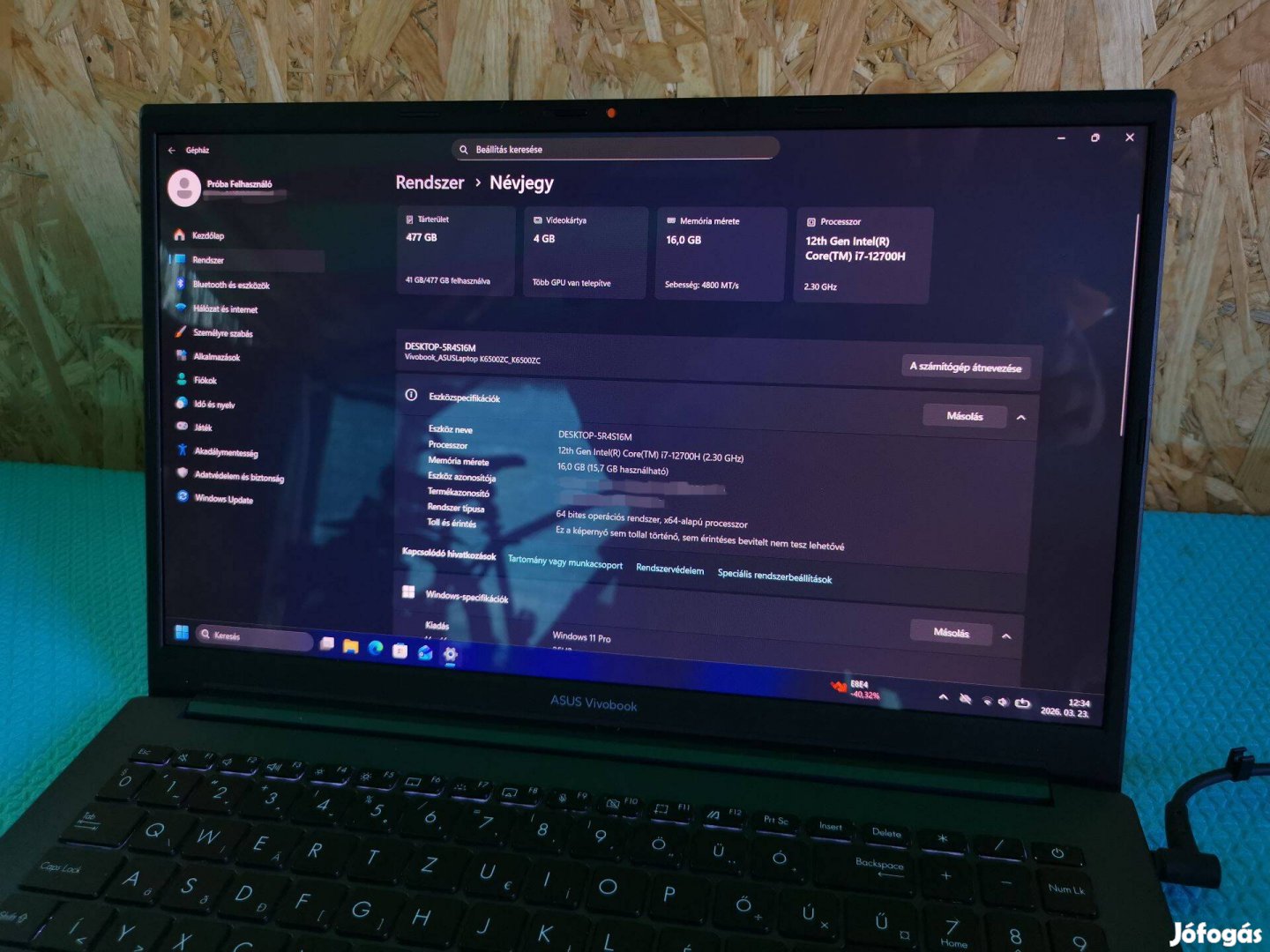 Eladóvá vált szeretett Asus Vivobook Pro 15 laptopom kihasználatlanság miatt. A készülék műszakilag hibátlan, gyors és megbízható, mindennapi használatra, tanulásra, munkára vagy akár játékra is tökéletes választás.