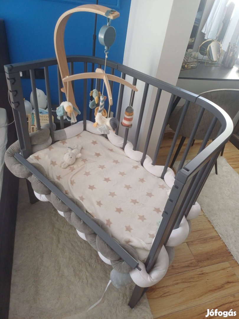 Eladó az alábbi kiságy.Barmilyen magassagba állítható,szülői ágy mellett és önállóan is használható. Hozzá való matraccal együtt kínálom eladásra.