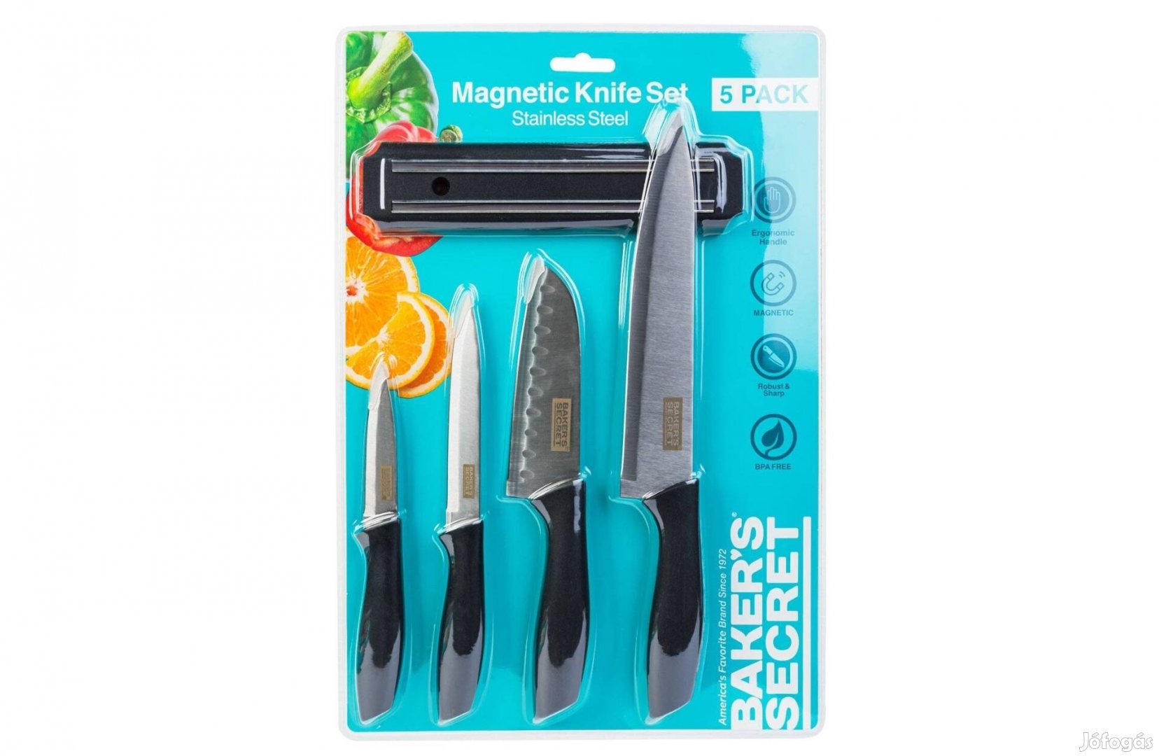 Baker's Secret Mágneses fali konzol és 4 db kés szett