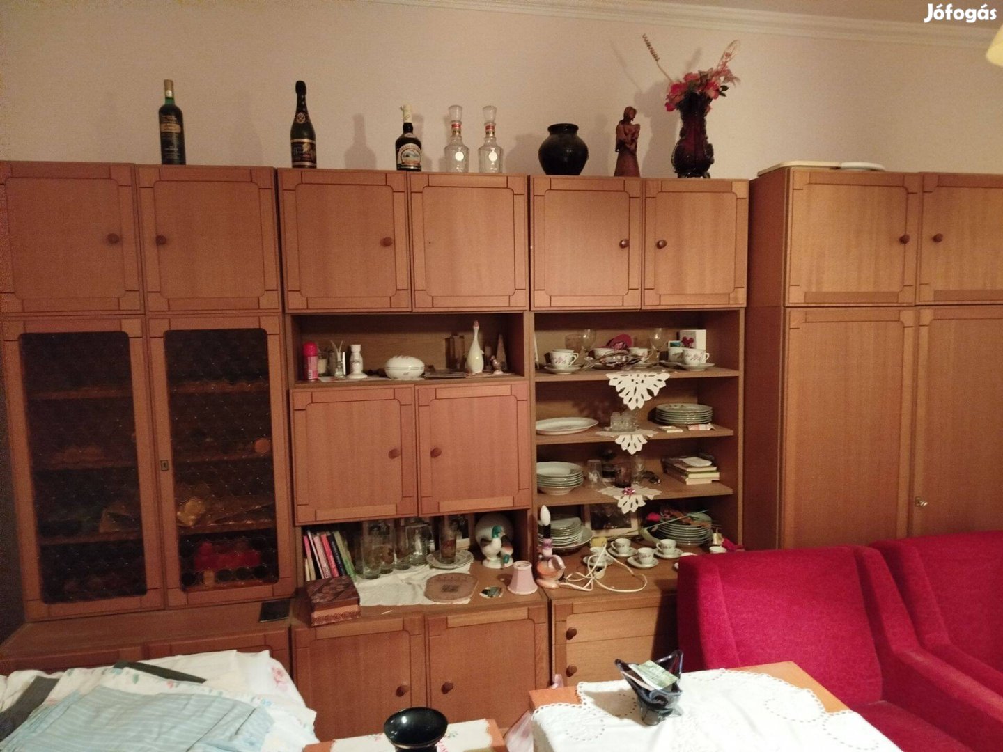 Eladó barna színű 4 tagból álló szekrénysor.