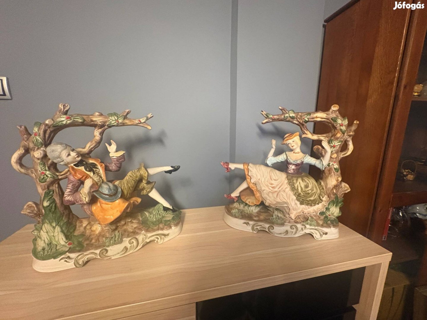 Nagy méretű 40 cm szer 40 cm szer 20 cm es olasz kerámia! Barokk nemesi fiatal párt ábrázolnak! Javított de csak nagyon közelről lehet észre venni!
