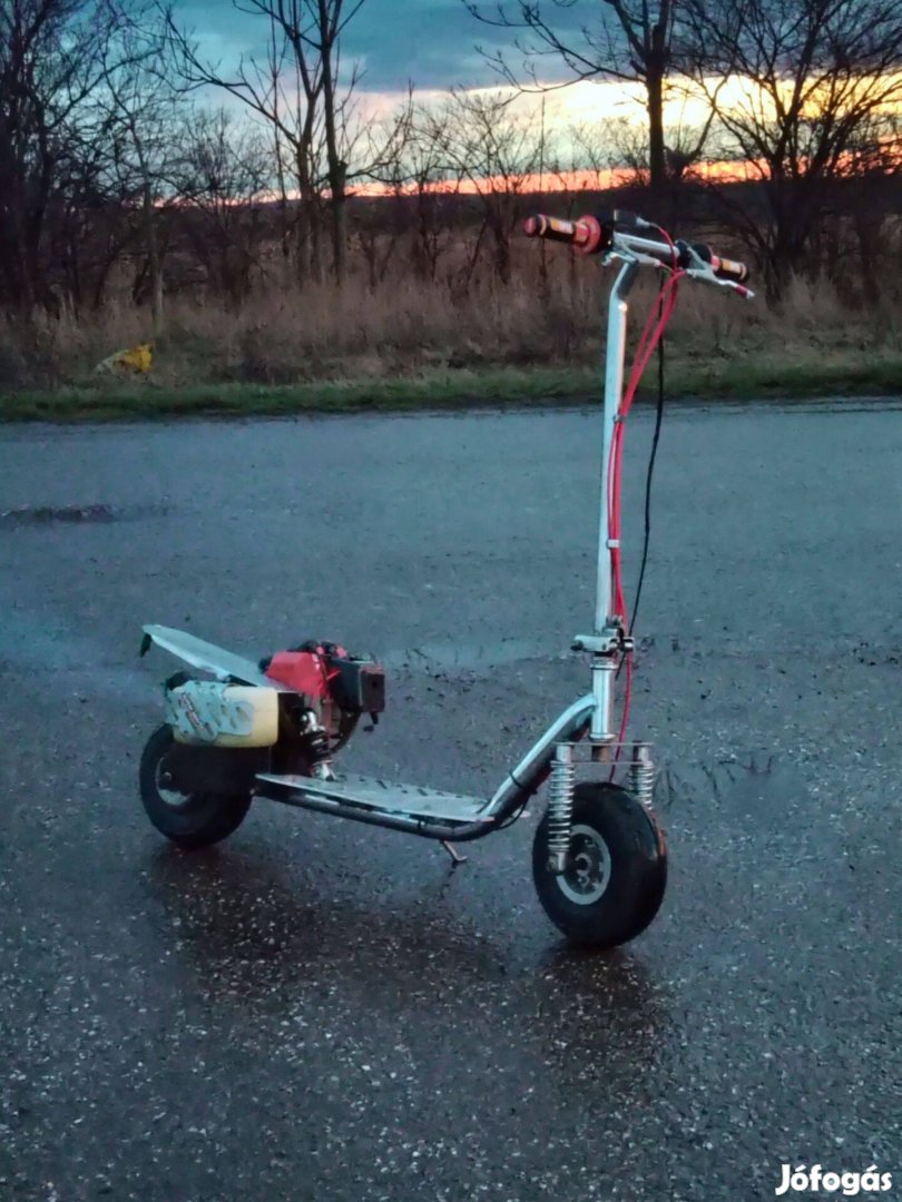 Sziasztok,Eladó a képen látható masszív, benzines roller. Strapabíró vázzal, nagyméretű, széles gumikkal és első-hátsó rugózással.