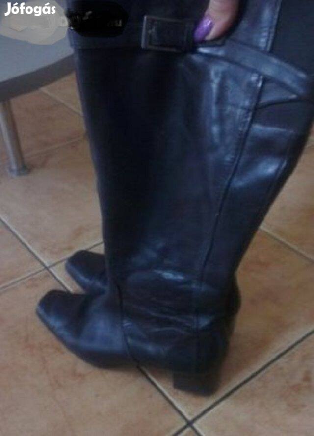- Puha, bélelt, fekete 39-es zipes bőrcsizma.