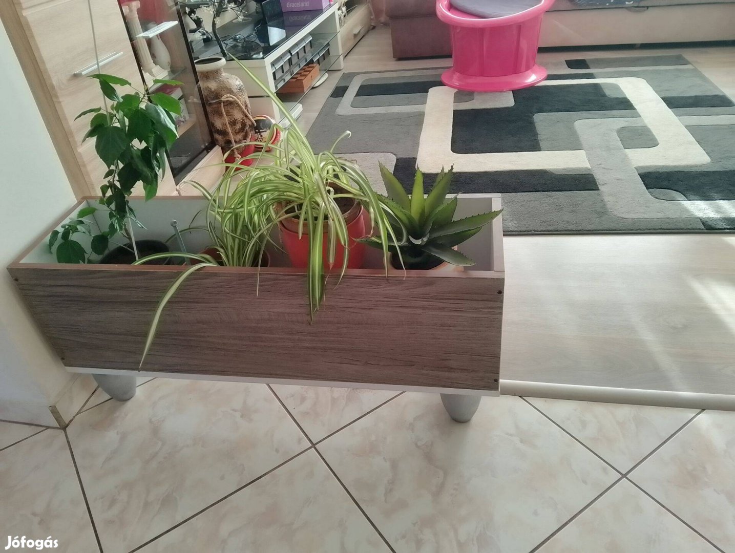 Bútorlapból készült virágláda újszerű állapotban 6500 Ft-ért olcsón eladó. Mérete: 100 cm hosszú, 20 cm széles, 40 cm magas. Néhány virágot is tudok hozzá adni.