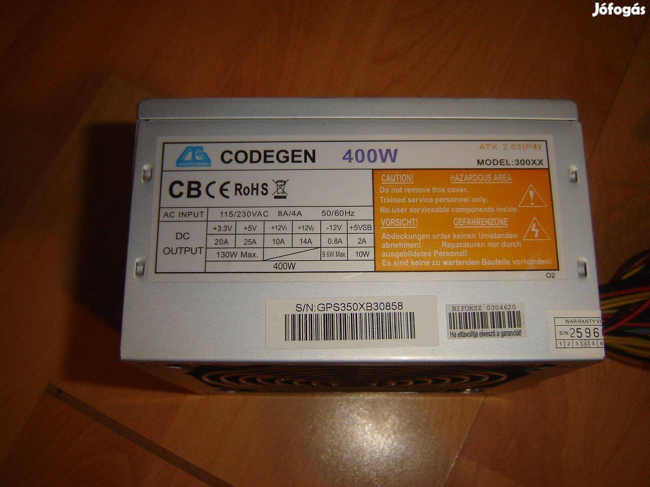 Eladó a képen látható 400W-os Codegen márkájú tápegység.