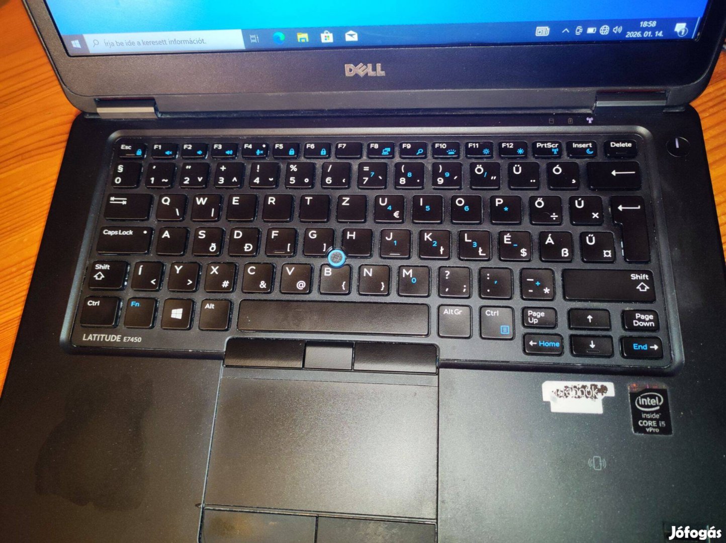 Eladó egy Dell Latitude e7450 laptop.Intel Core i5-5300u processzor,8 GB RAM,256 GB tárhely,Intel HD Graphics 5500,új világítós magyar billentyűzet,full HD kijelző, megvigyázott állapotban eladó.Az akkumulátor 23 %-os.
