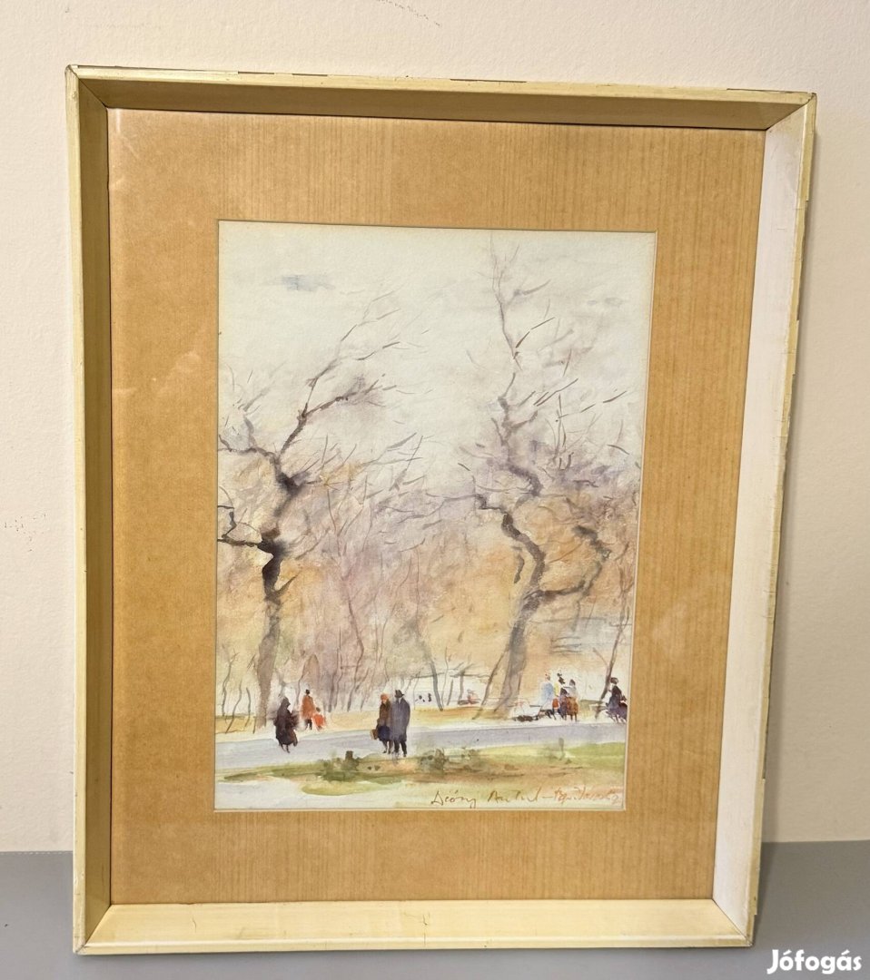 Eladó Diósy Antal (1895-1977) festőművész ,,Városligeti részlet" című, hangulatos figurális akvarellje.