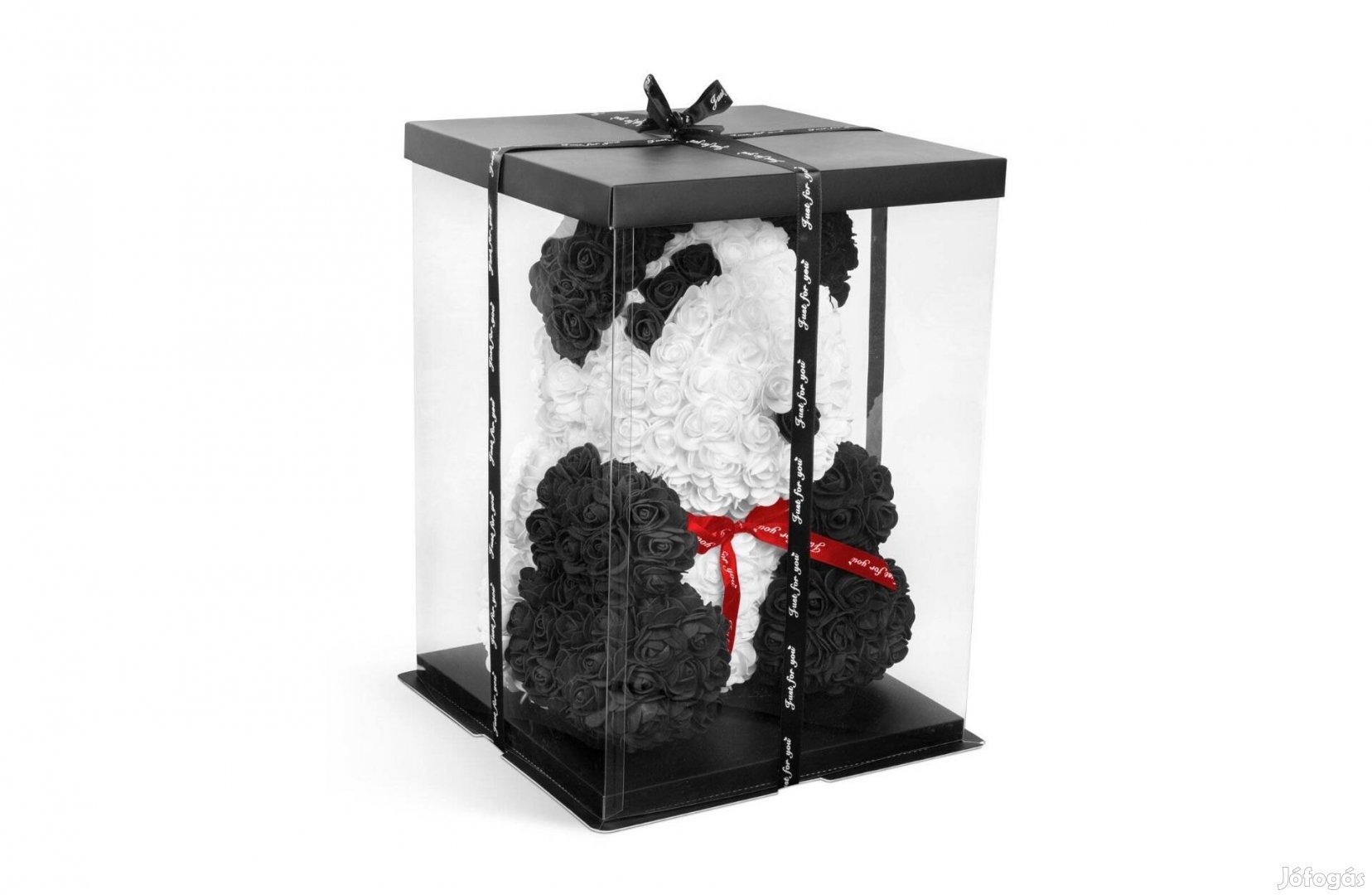 Díszdobozos Fekete fehér Rózsamaci pandamaci - piros masnival - 40 cm
