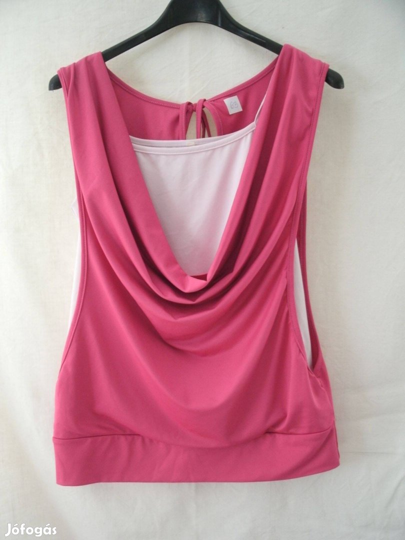Dupla "M" méretű elegáns blúz, vállpántos része fehér, külső része pink.. Anyaga enged, Hossza:52, mellb:78, derék:74 cm.