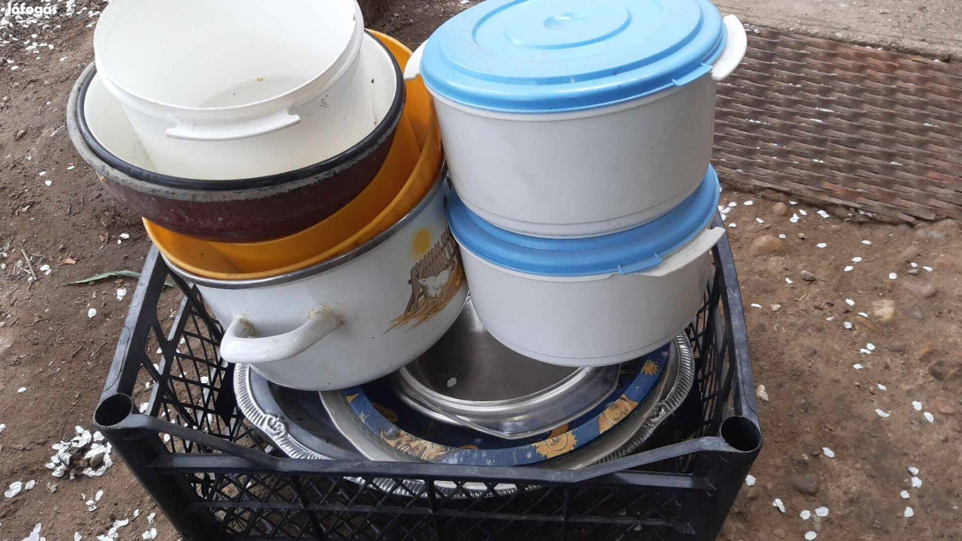 edény tálca tál . A képen látható darabok egyben eladók. A kenyérvágó gép működik szépen. Postázni tudom.