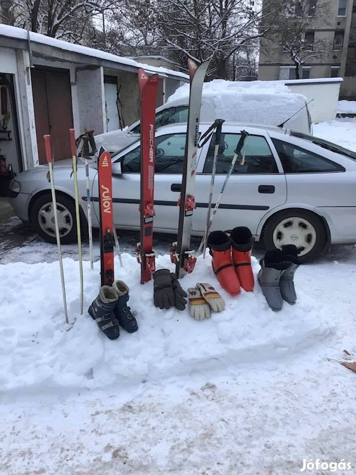 Használt, jó állapotú a képen látható családi, 3 pár sífelszerelés.