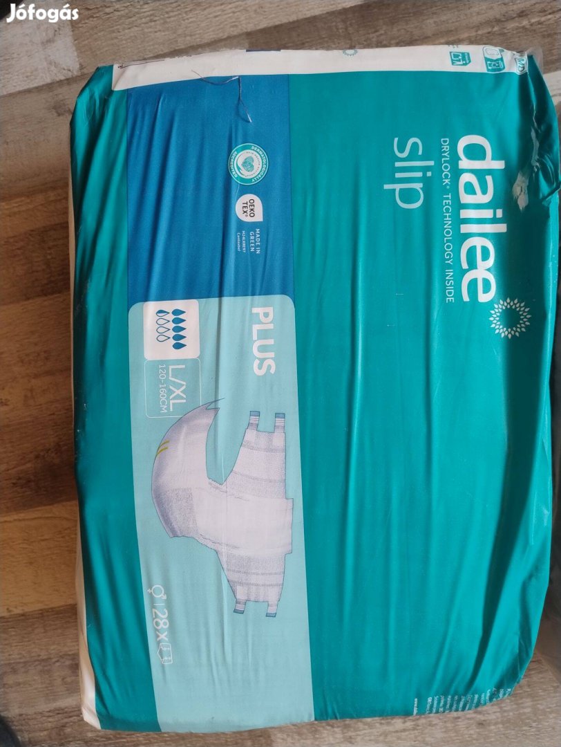 Eladó a képen látható Dailee slip plusz L/XL méretű felnőtt pelenka 28/db van egy csomagban.