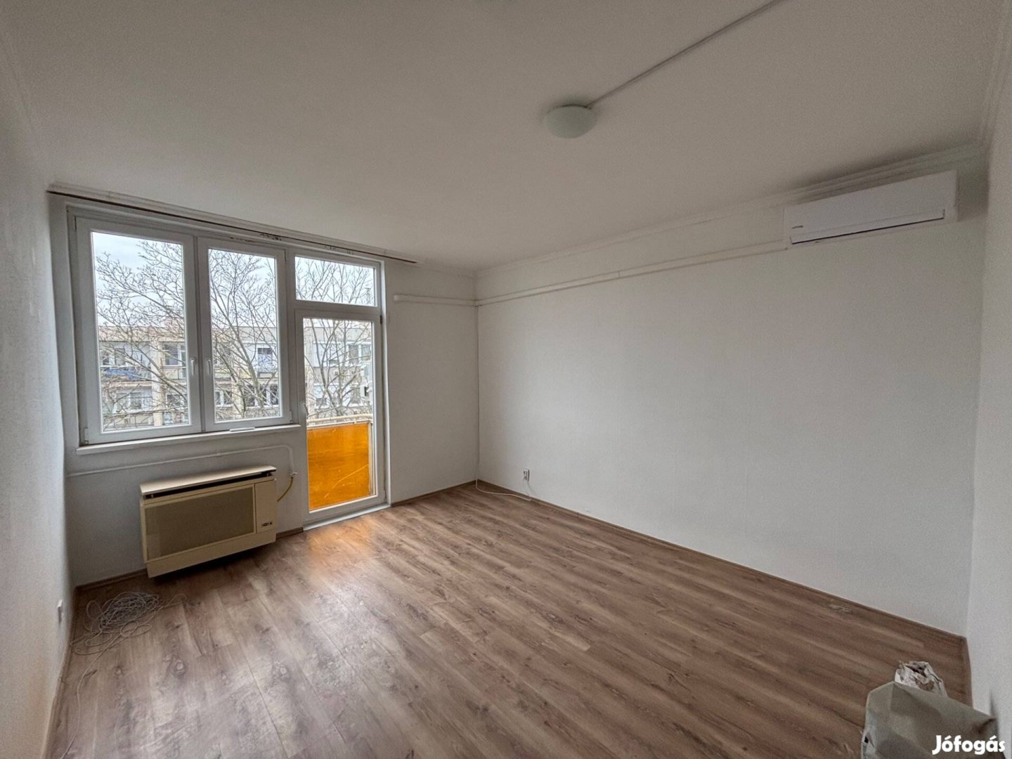 A lakás 44 m2, 1 + 1 fél szobás, plusz egy fél szoba került kialakításra, mely gardróbnak és dolgozó szobának is megfelel. A lakás részben felújított, légkondicionálóval ellátott, azzal együtt eladó.
