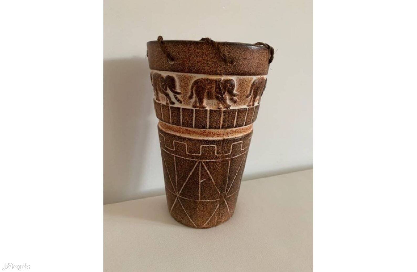 Elefánt mintájú barna színű kerámia váza