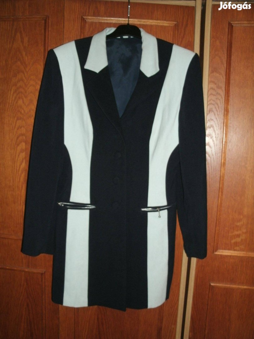 Elegáns, sötétkék, fehér betéttel "L" zakó, blézer