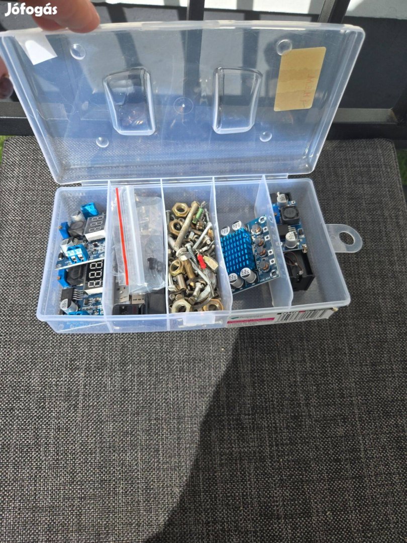 Eladó egy praktikus rendszerező doboz, tele hasznos elektronikai modulokkal és kiegészítőkkel. Ideális választás hobbi fejlesztőknek, barkácsolóknak vagy javítással foglalkozóknak.