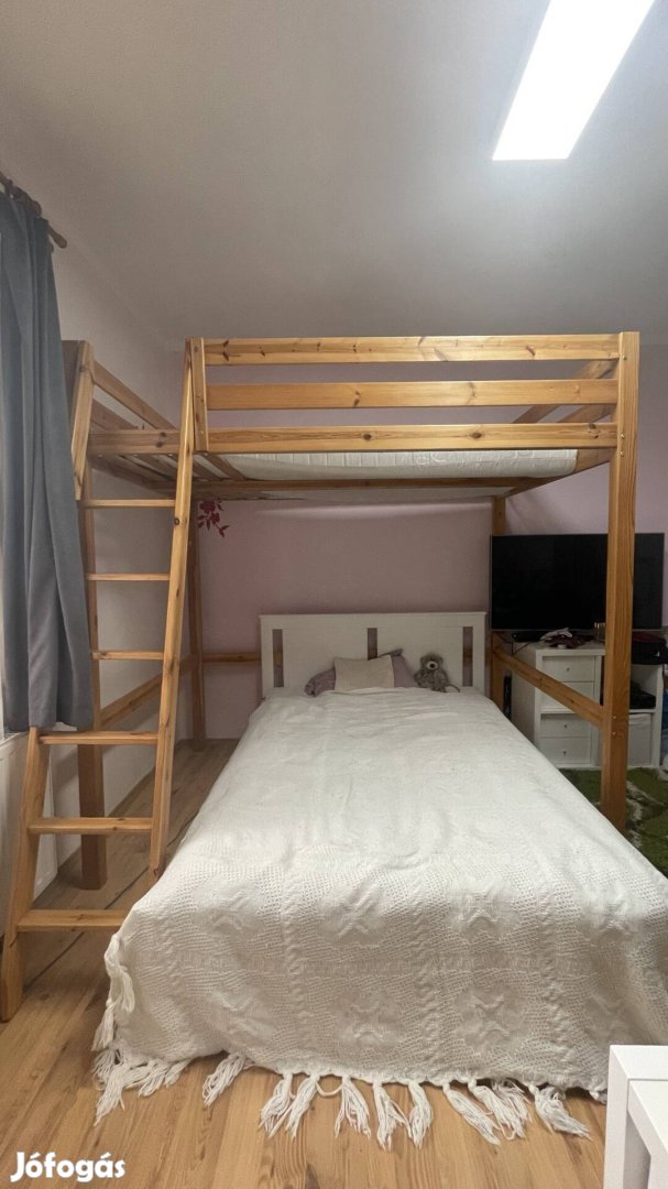 Eladó egy fenyőből készült ágykeret matrac nélkül. A belehelyezhető matrac mérete 200*140cm, a teljes magasság 213,5cm, az belmagasság 168,5cm. Csak személyes átvétel lehetséges Debrecenben.