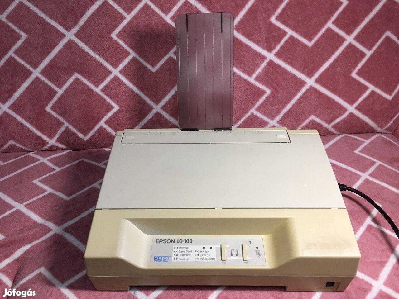 Epson LQ-100 24 tűs mátrixnyomtató megkímélt állapotban eladó. Jár hozzá: Centronics printerkábel, hálózati kábel, magyar nyelvű felhasználói kézikönyv, kimenő papírtámasztó, valamint egy bontatlan eredeti Epson festékkazetta (habár a most benne levővel is szépen nyomtat). A modern gépekhez egy Centronics-USB adapterrel csatlakoztatható. Recept nyomtatására is alkalmas, bár a 360x360 dpi-s felbontása miatt pazarlás lenne arra használni. A printer japán gyártmány. Hívjon telefonon, a chat-et nem nézem!