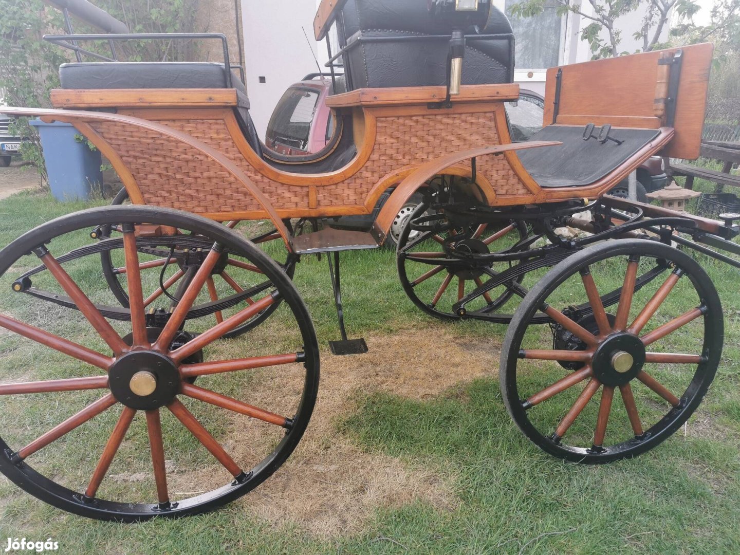 Galambos hintó gyártó mester által készített Eszterházy vésett oldalú fa verseny hintó eladó. 4 tárcsa fékes, két pedálos, szép mahagóni színű pácolt korba, jó vastag gumirádli, könnyű járású, stabil, jó rugókkal, kovácsolt ívelt tengelyekkel, bőr karpitokkal, állítható verseny bak ülés. Egy, két és négy ló fogatolására alkalmas fa és vas rúd is meg van hozzá!!! Szállítás kedvező áron megbeszélhető!