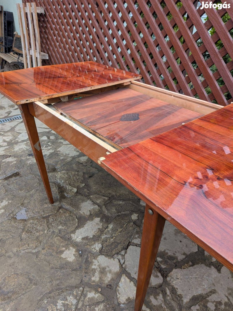 Bővíthető, kihúzható "román" fa étkező asztal