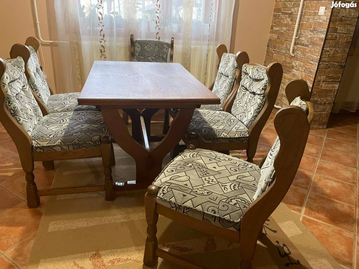Tölgyfa asztal 120cm×80cm,ami bővíthető 180cmre és 6 db tölgyfa szék.