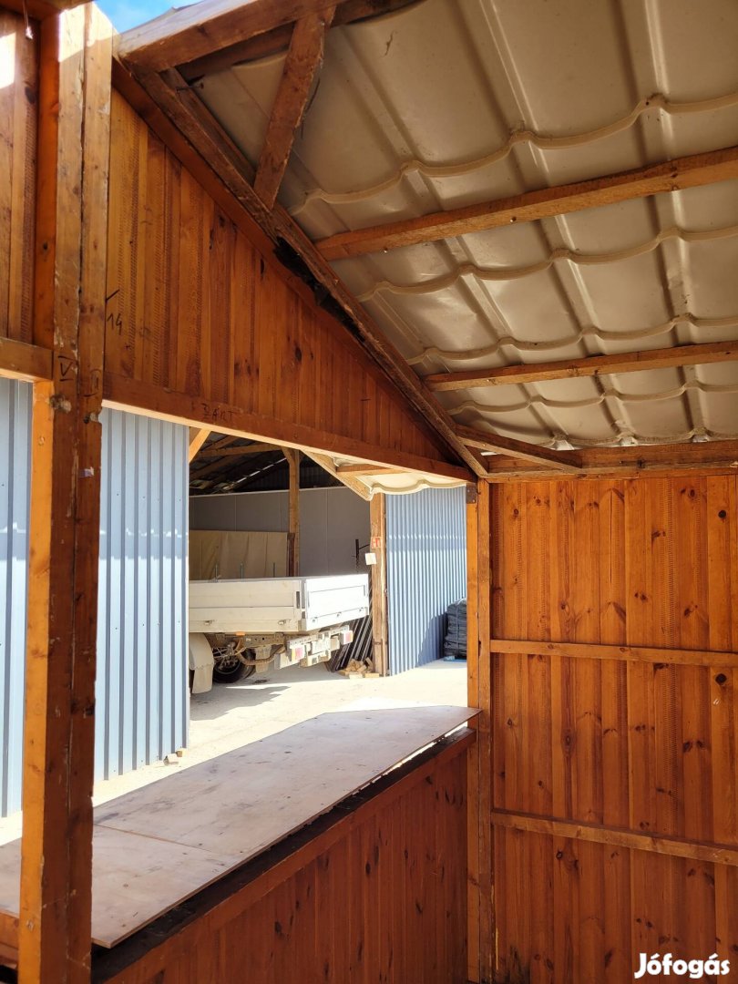 Eladó a képeken látható faház, 4x2 m alkalmas árúsításra , tarolásra, szállításban tudok segíteni.