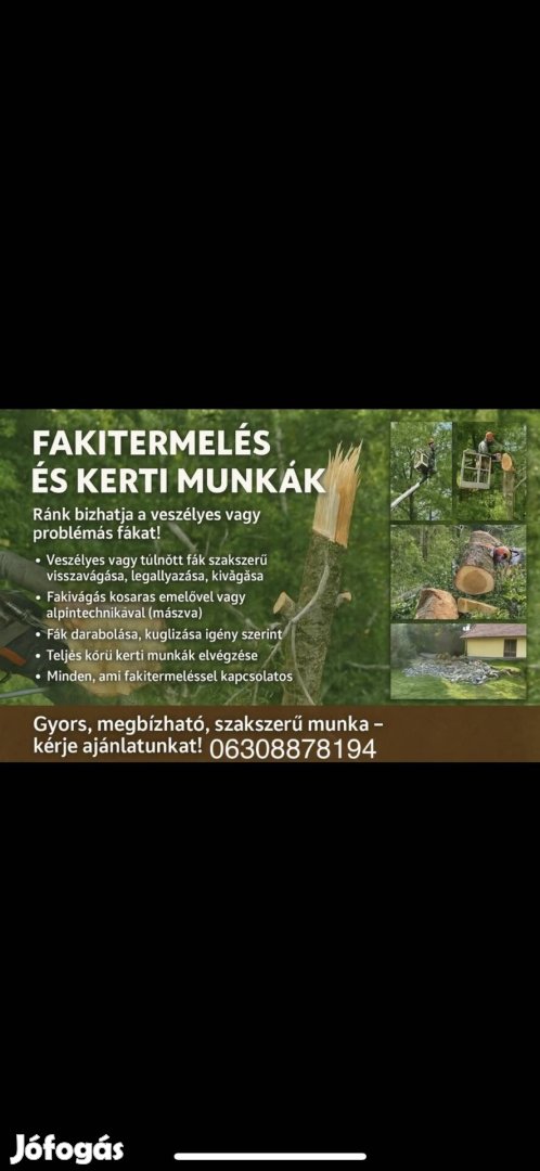 o Fakivágás kosaras emelővel vagy alpintechnikával (mászva)