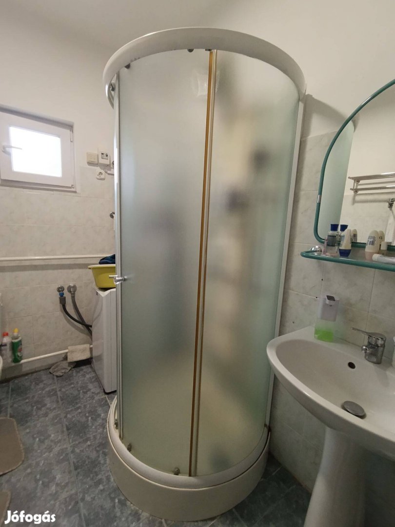 Felújítás miatt eladó egy használt zuhanykabin, 100x85 cm-es, falsíkra szerelhető. Padlólapra is szerelhető. A zuhanypanel nem része az árnak.