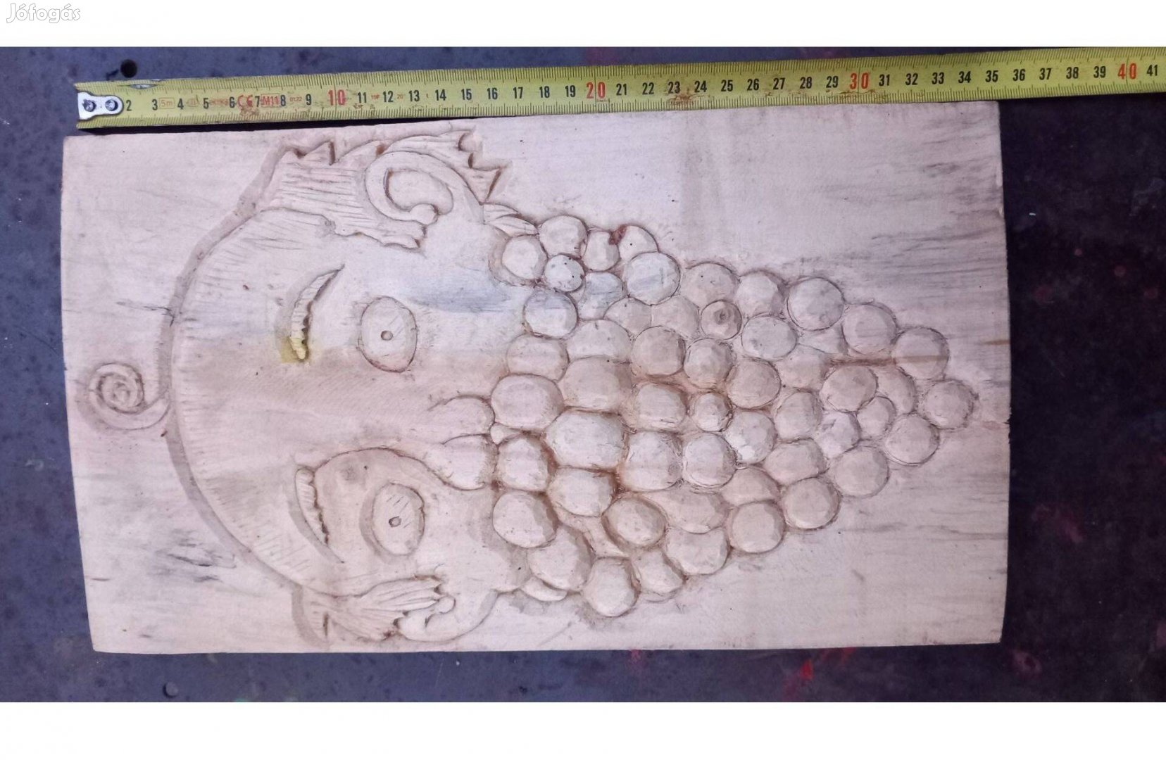 Fából készült faragott kép vastag, filagória vagy pl borospince dekorációnak. Szép állapot. 34x 20 cm.