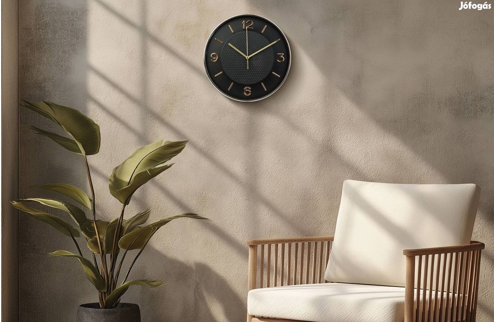 Fekete - Arany Analóg Falióra - 25 cm - műanyag, üveg - 1 x AA