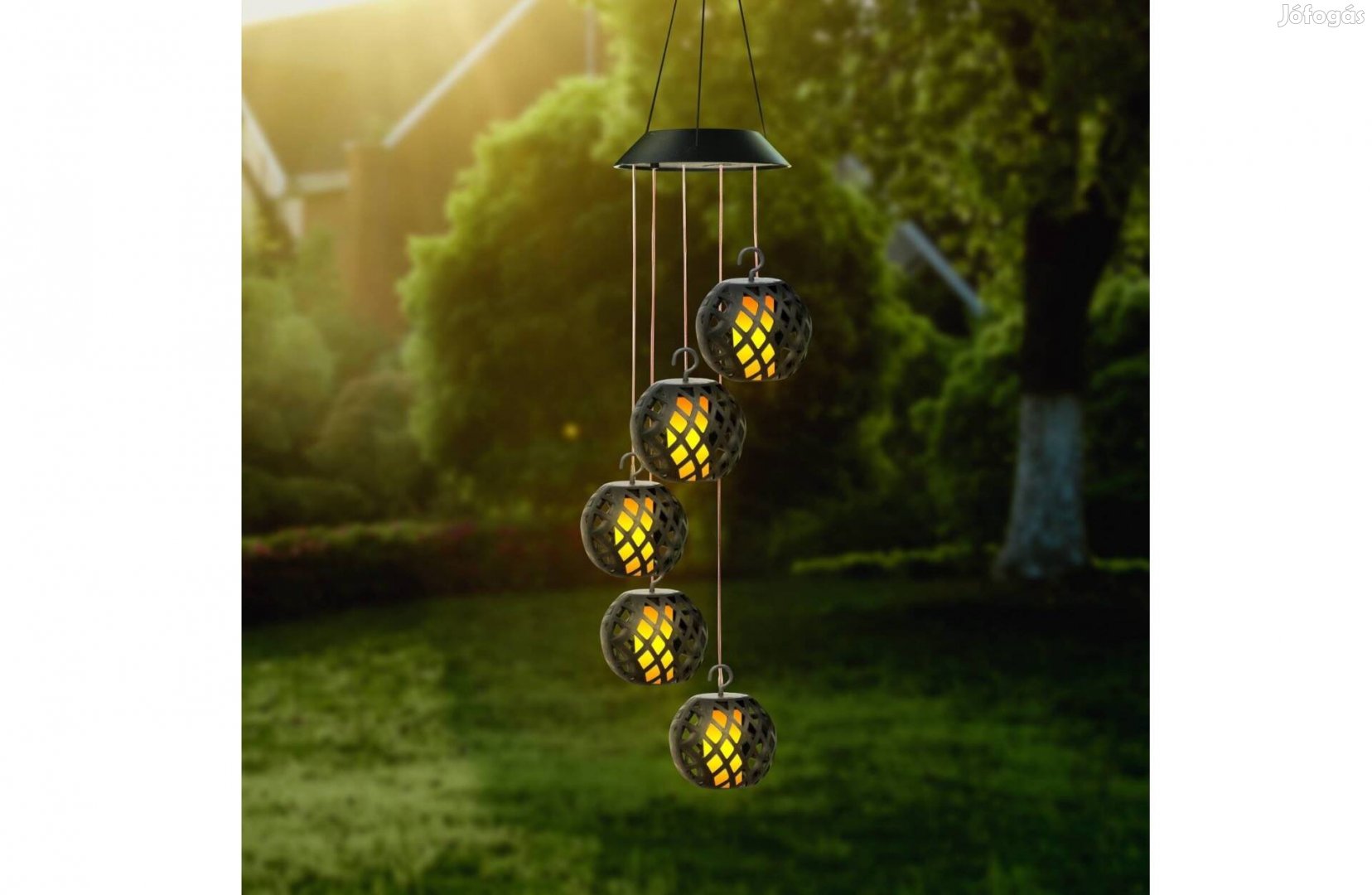 Felakasztható Szolár lámpa - lánghatással - 5 gömb - 7 cm - 50 LED