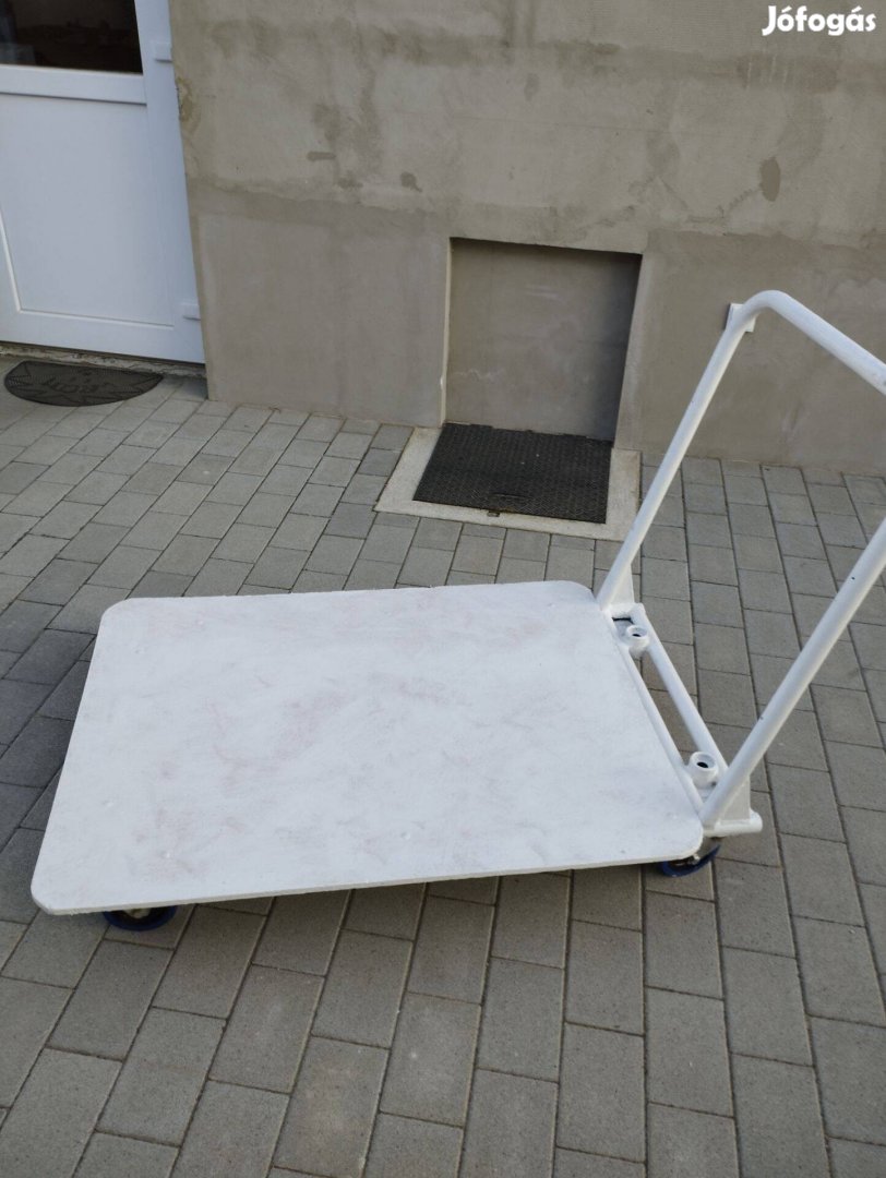 Nagy teherbírású fém kézi kocsi, méretek 110x85 cm , 4 db-új kerékkel ,vasból készült, minden új rajta , 500 kg teherbírás Eladó.