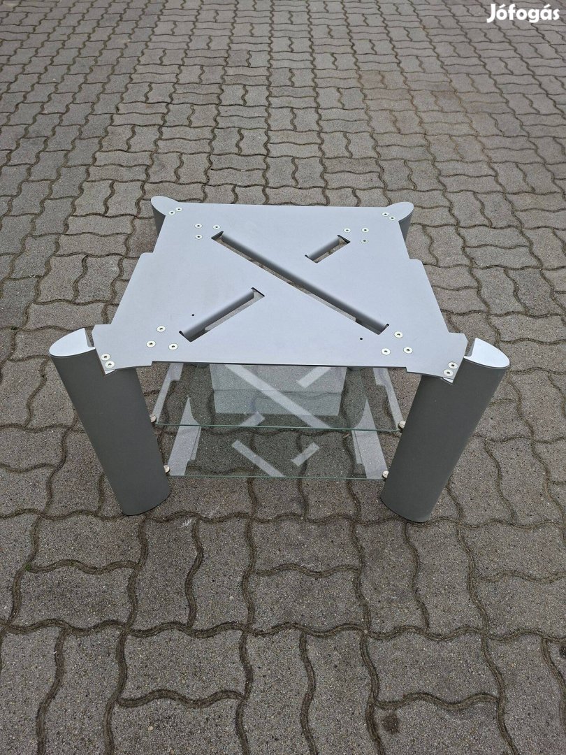 Porszórt fém gyári Panasonic TV állvány üvegpolcokkal, kiváló állapotban. Nem tudom csomagban küldeni, a szállítást a vevőnek kell megoldania.