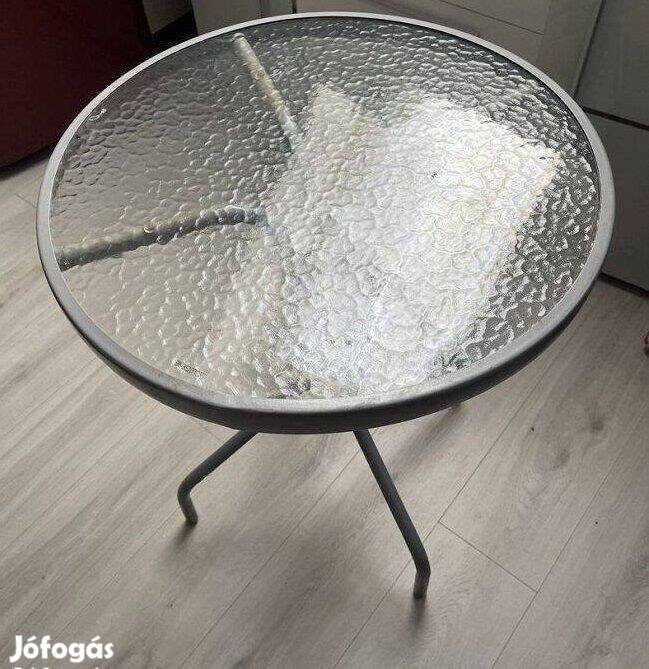Fém üveglapos kisasztal 60cm újszerű