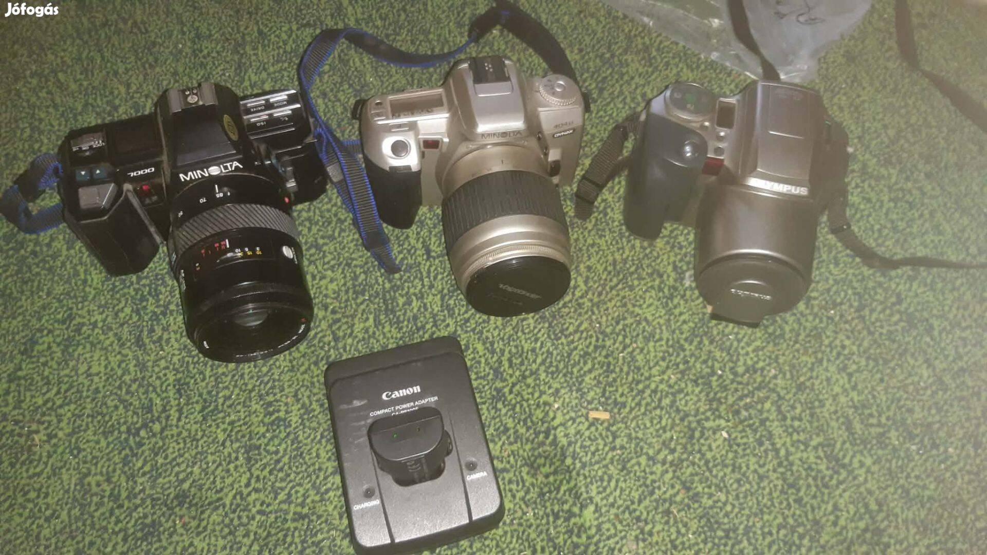Fényképező gépek objektívek. Minden amit a képen látsz egyben eladó. 3db gép, és canon töltő. Tudom küldeni bármilyen szállitással.