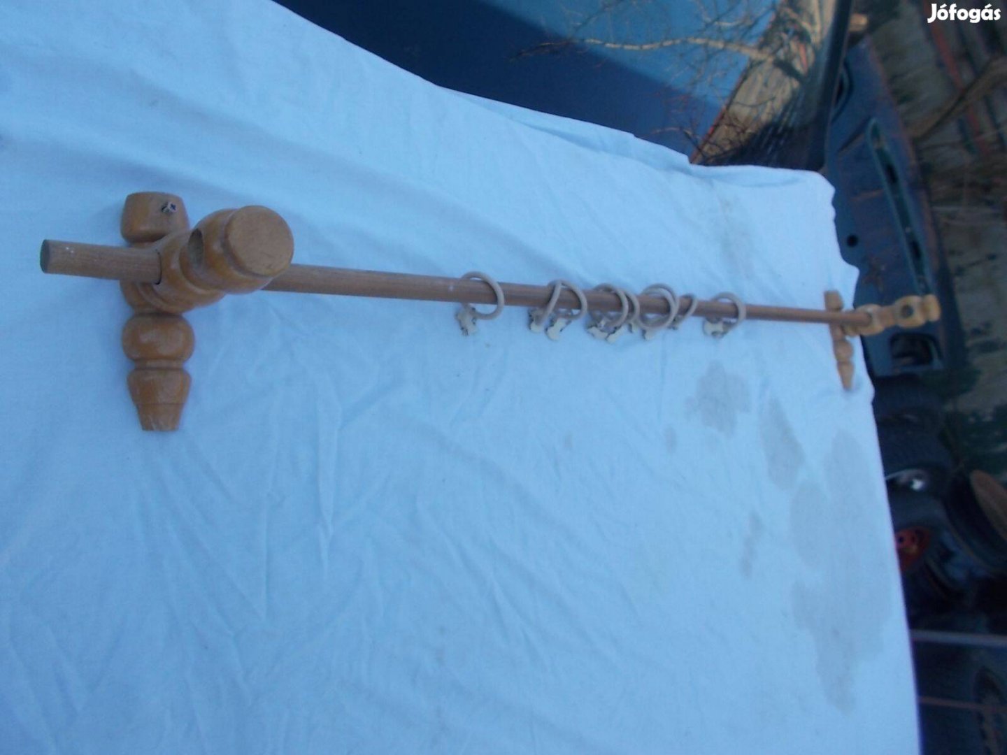 fenyőfa karnis karikákkal csipesszel képek szerint kb 120 140 cm kérésre megmérem pontosan