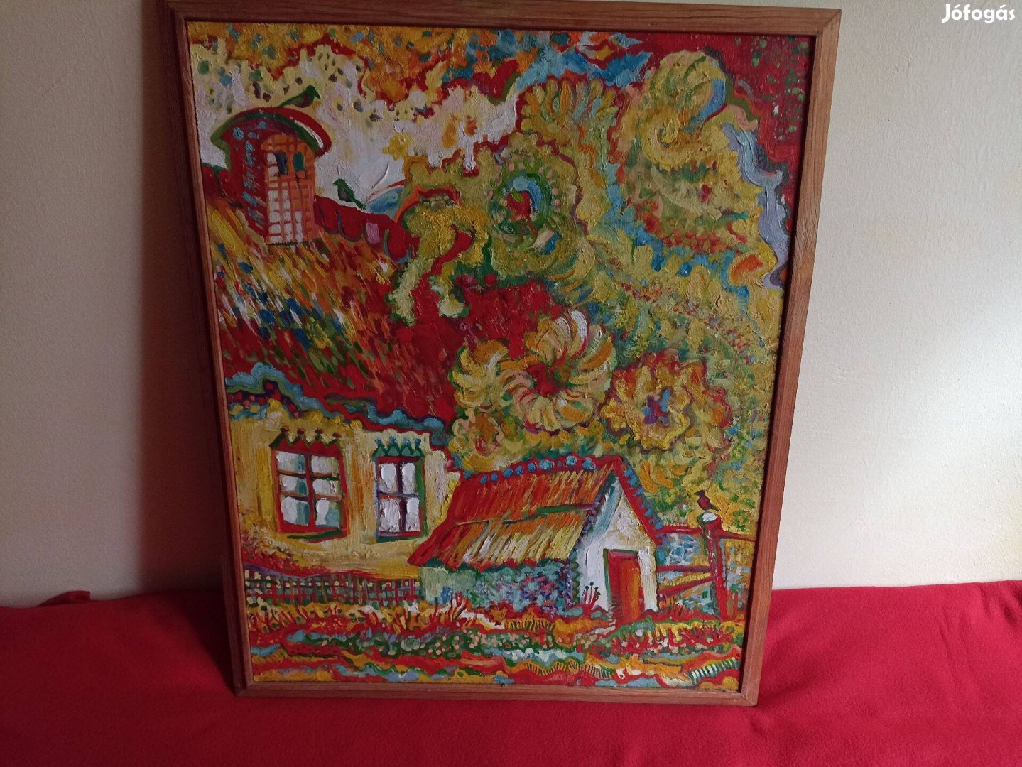 Festmény Buka László vidéki ház című olaj farost, 1999-ben festette, 60*50cm méretben eladó.