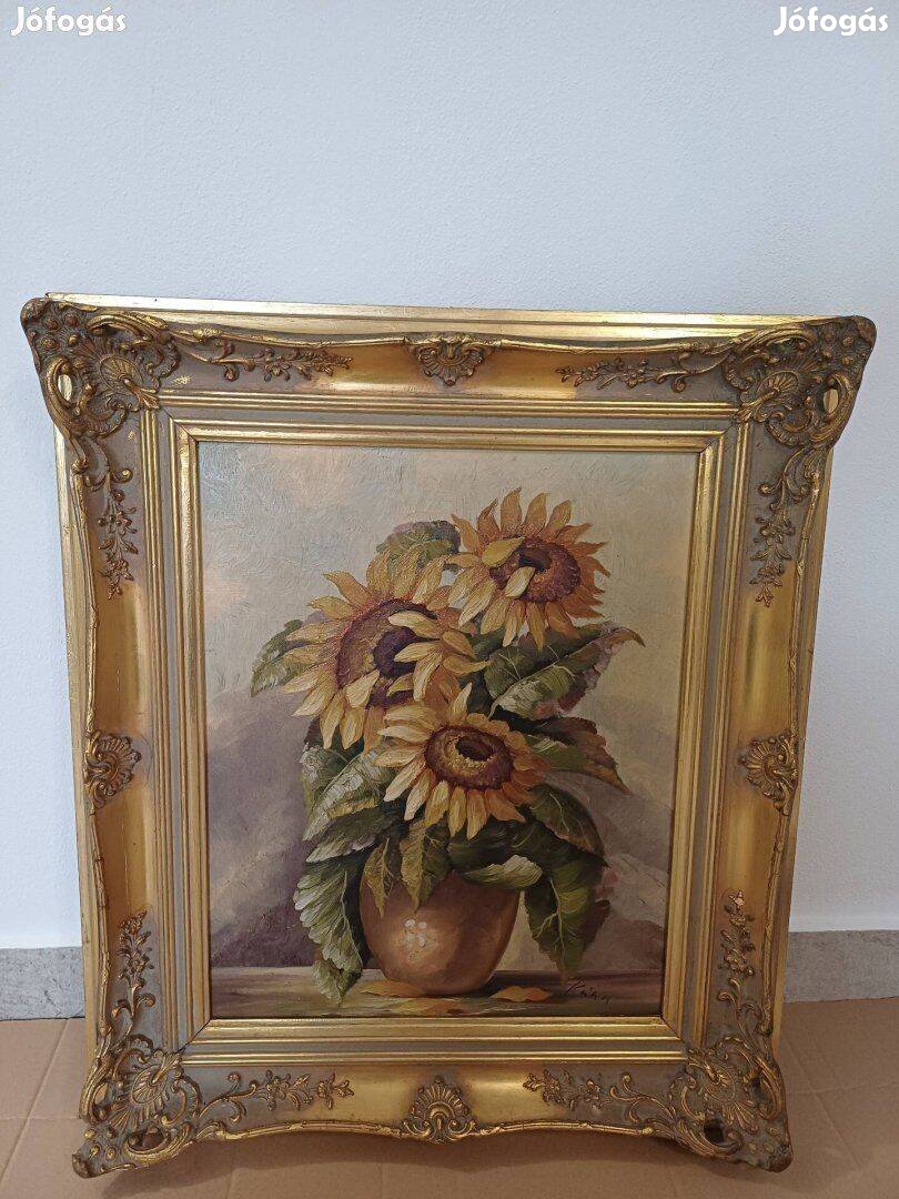 Festmény olaj vászon, napraforgó csendélet