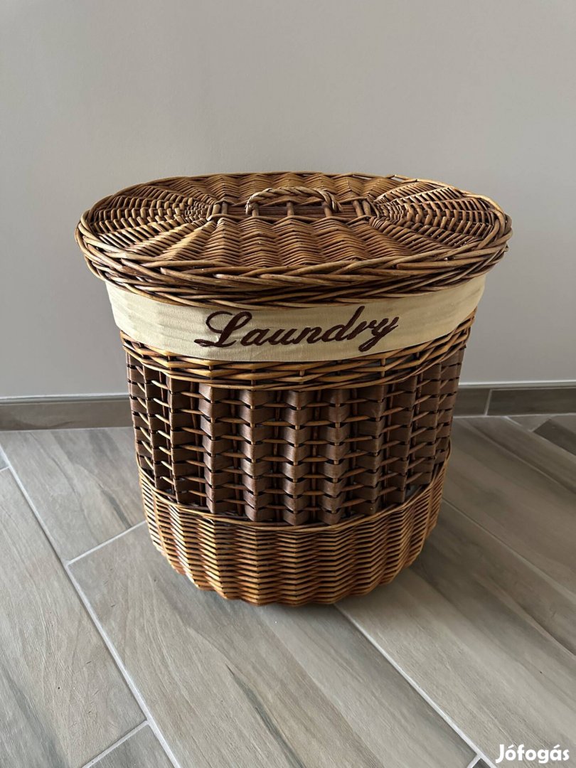 Fonott szennyeskosár fedéllel barna szennyestartó kosár